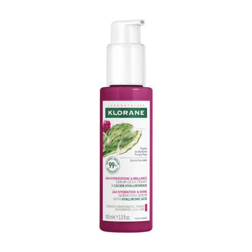 Klorane Shine & Hydration Quenching Hair Serum with Prickly Pear & Hyaluronic Acid is your final step to glass hair. Powered by Prickly Pear and hyaluronic acid, this gloss serum hydrates for 24 hours^^, smooths the hair cuticle, and locks in salon shine.