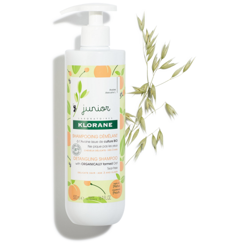 Le Shampoing Démêlant à l’Avoine issue de culture BIO au délicat parfum de pêche lave et démêle en douceur les cheveux des enfants.