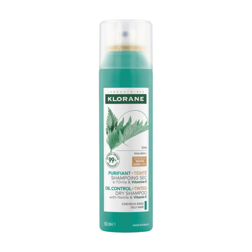 Ce shampoing sec purifiant teinté à l'Ortie et Vitamine E limite la production de sébum, assainit les racines et purifie les cheveux gras, bruns pour 24h*.