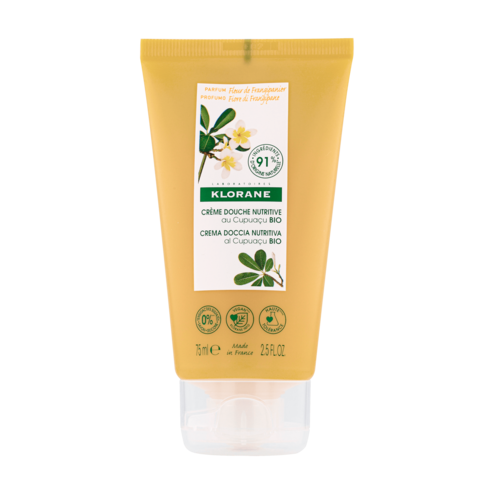 De Douchecrème met Frangipanibloem is mild voor de huid en speciaal ontwikkeld om de droge huid te wassen en te voeden. Wanneer de hydrolipidenfilm beschadigd is, raakt de vochtbalans van de epidermis verstoord waardoor de huid aan elasticiteit verliest.. Klorane heeft gekozen voor Cupuaçu gekozen vanwege zijn unieke voedende eigenschappendie onttrokken worden uit de boter van deze vrucht afkomstig uit het Amazonegebied. Het is rijk aan vetzuren, met 1,5 keer meer voedingsstoffen dan karitéboter. Door het te verwerken in een romige formule, verrijkt met actieve bestanddelen van natuurlijke oorsprong met voedende eigenschappen, helpt de Douchecrème de huid om beter vocht vast te houden, voor een perfect gehydrateerde en gevoede huid.