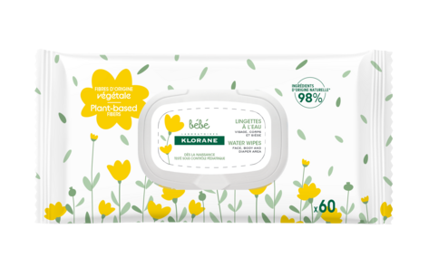 De biologisch afbreekbare vezeldoekjes** voor baby’s van Klorane zijn geïmpregneerd met reinigingswater en verwijderen niet alleen onzuiverheden, maar zullen de huid van baby’s ook hydrateren en verzachten. De formule zonder naspoelen bestaat voor 98% uit ingrediënten van natuurlijke oorsprong en zorgt ervoor dat het schoonmaken van billetjes en vervangen van luiers buitenshuis gemakkelijker gaat. Ze bestaan voor 96% uit water en zijn verrijkt met glycerine van plantaardige oorsprong. Ze verzachten roodheid op de billetjes en gaan tegelijk een droge huid tegen. De huid is gezond, zacht en gehydrateerd en voelt niet plakkerig aan. De doekjes gaan een droge huid tegen* en dragen bij aan een gemakkelijk verzorgingsmoment dat gekenmerkt wordt door een tedere geur. Ze zijn getest onder pediatrisch toezicht en worden al vanaf de geboorte zeer goed getolereerd. Deze doekjes zijn gemaakt van 100% biologisch afbreekbare vezels van plantaardige oorsprong**. Het praktische hersluitbare zakje houdt de doekjes fris en vochtig, zo kunt u ze overal mee naartoe nemen.