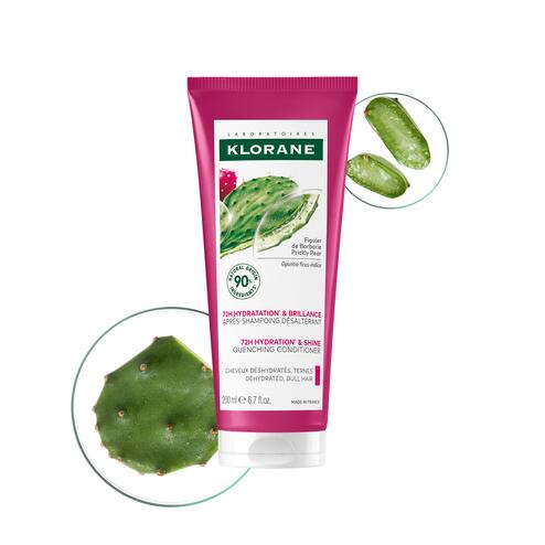 This Quenching conditioner with Prickly Pear hydrates for 72H* and restores shine to dehydrated and dull hair. Its formula detangles and seals the hair cuticles to better isolate the hair fiber and maintain optimal hydration. Hair instantly becomes easy to style, revealing its full brilliance. Formulated with 90% natural ingredients, this conditioner enriched with Prickly Pear, known for its moisturizing properties superior to Glycerin**, is effective in hydrating and restoring flexibility from the scalp to the tips.