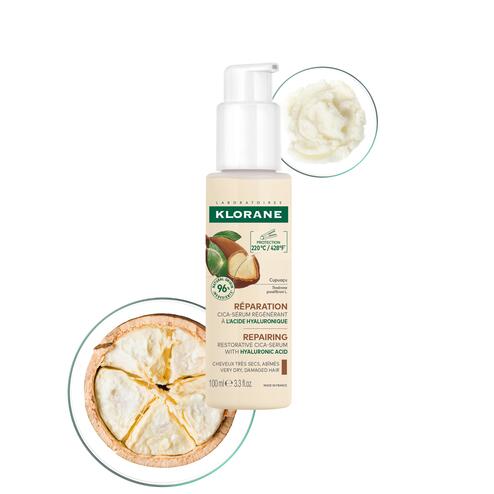 This Repairing Restorative Cica-Serum with Hyaluronic Acid and Organic Cupuaçu is a repairing and thermo-protective leave-in haircare treatment with powerful nourishing properties. Plant-based Hyaluronic Acid protects and restores.