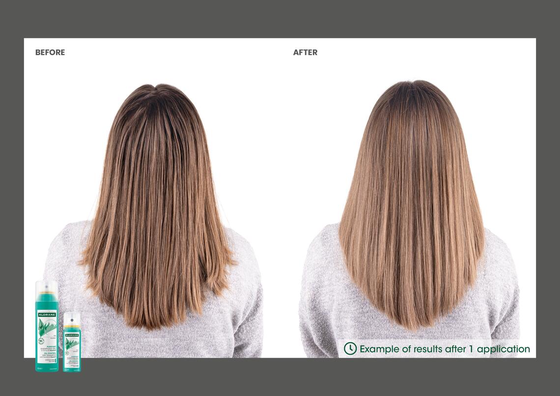 Ce shampoing sec purifiant à l'Ortie et Vitamine E limite la production de sébum, assainit les racines et purifie les cheveux gras pour 24h*.