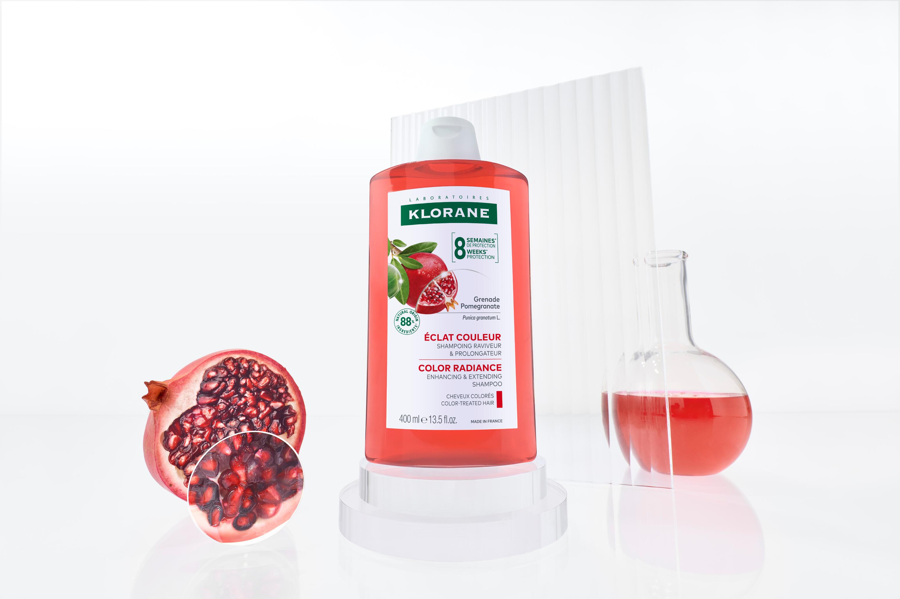 Les laboratoires Klorane ont sélectionné l’écorce de Grenade Médicinale, Punica granatum L., riche en tanins fixateurs de couleur, utilisée depuis des siècles au Maroc. Véritable trésor botanique aux vertus antioxydantes, hydratantes, nourrissantes et adoucissantes, elle révèle et prolonge l’intensité de la coloration tout en respectant la fibre capillaire.
