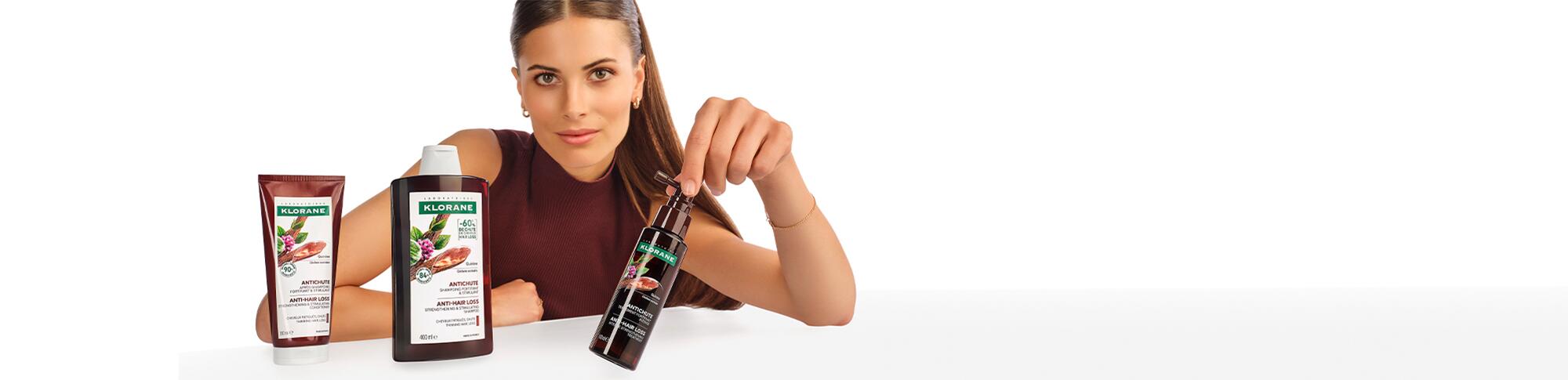 ● Kuracja intensywnie wzmacniająca z Chininą | Klorane, która wzmacnia włosy, spowalnia ich wypadanie, a także stymuluje wzrost włosów.