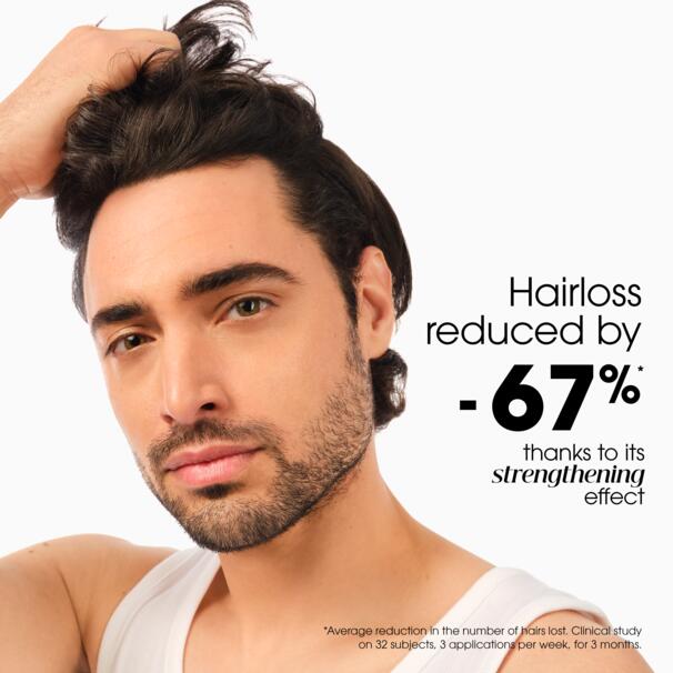*Average reduction in the number of hairs lost. Clinical study on 32 subjects, 3 applications per week for 3 months.